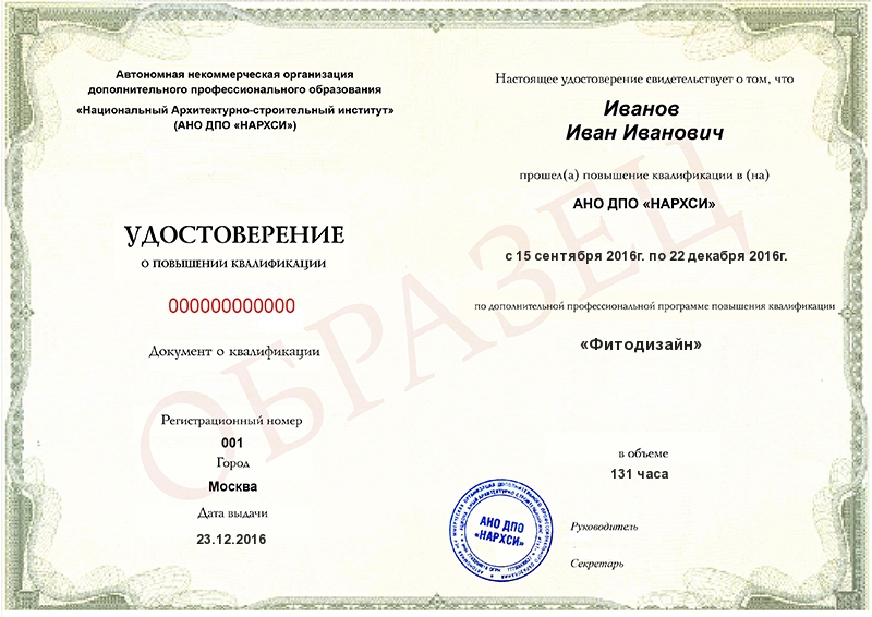 - Образец удостоверения о повышении квалификации.