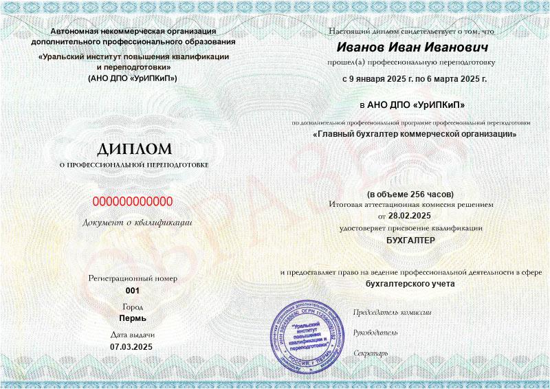 Курс обучения Главный бухгалтер коммерческой организации (256ч)