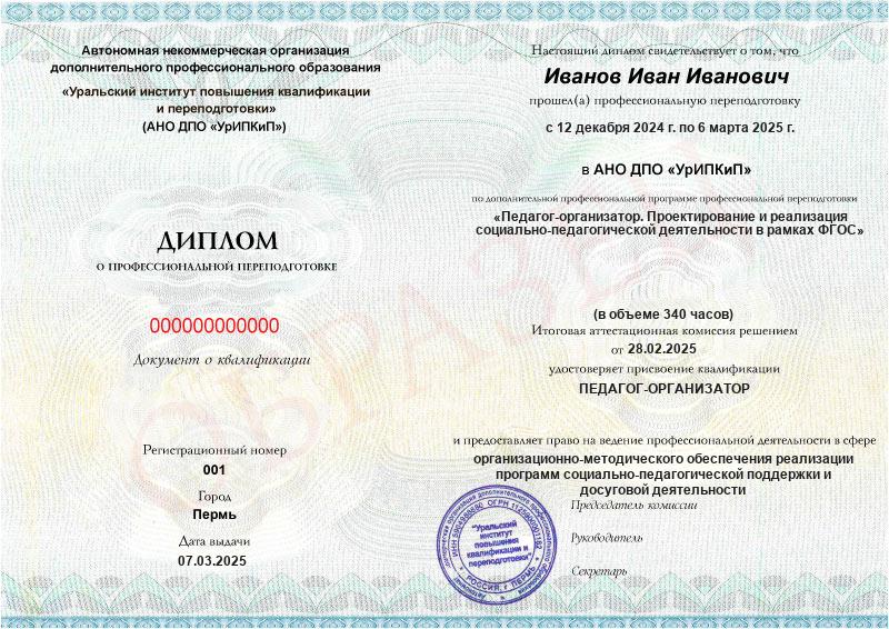 - Образец диплома о профессиональной переподготовке.