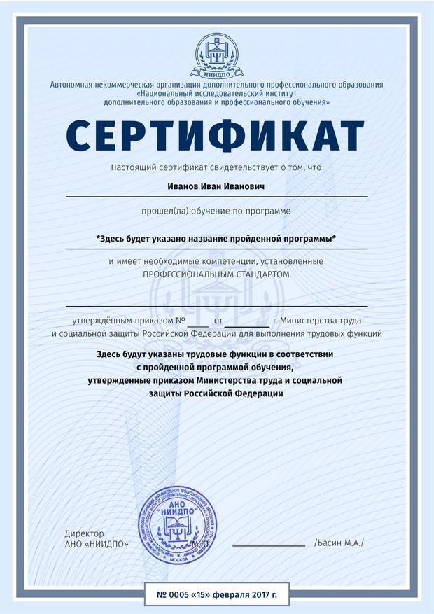При отсутствии требуемого образования вам будет выдано свидетельство о дополнительном образовании в электронном виде.